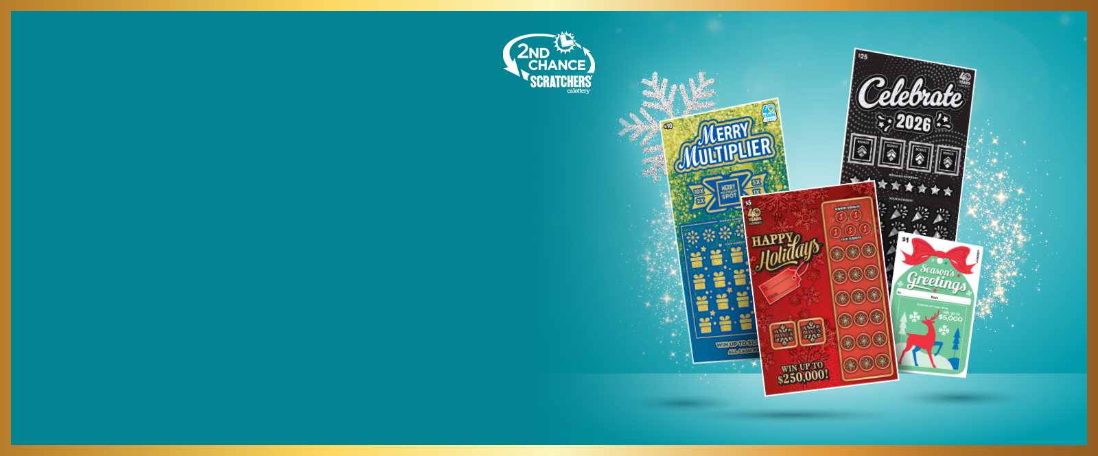 HAPPY HOLIDAYS ($5): This glittery game has chances to find up to 5X prize multipliers and an 18-prize win all, doubles as a gift tag, and has a top prize of $250,000.